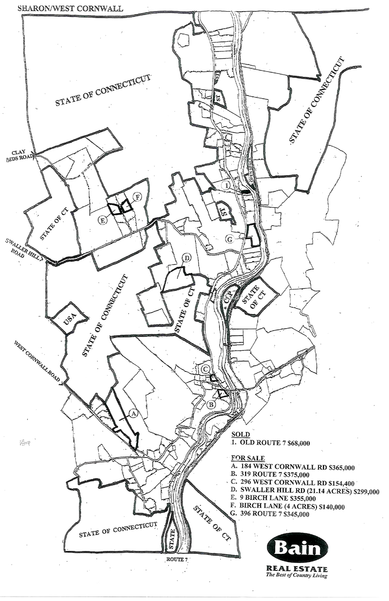 There are 30 acres of natural beauty surrounded by state forest land that is included with the house at 184 West Cornwall Road . It's made up of 3 surveyed parcels: The 1384 sq. ft. house comes with 2.13 acres and has 3 bedrooms and 2 bathrooms. It requires some renovation and upgrading. The balance of land is a separate parcel that has considerable elevation (over 1100 feet) offering views to the south and east. The whole package is listed by Rick Meehan of the Cornwall office for $365,000.