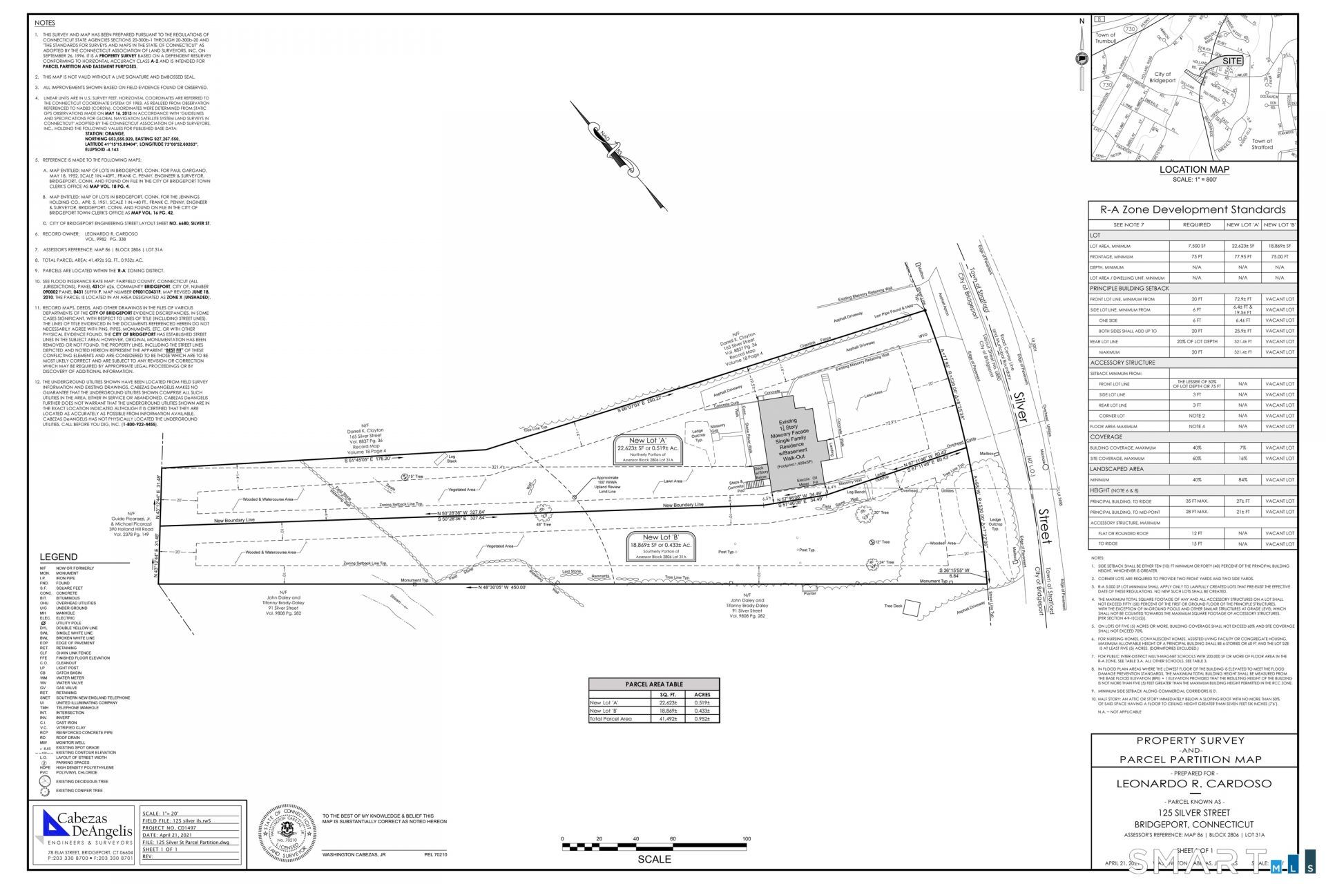 Located near the Trumbull and Stratford borders, this 0.43-acre lot offers a unique opportunity to build in a quiet, well-established neighborhood of Bridgeport. The property is just minutes from major highways, shopping centers, and restaurants, making it both peaceful and convenient. The lot features 75 feet of street frontage and extends over 400 feet deep. The front portion is level, transitioning into a gentle slope toward the rear-an ideal setup for a walk-out basement. A small brook runs along the back of the property, adding natural charm without the concern of flood risk, as the lot is not in a flood zone. The site is mostly cleared and ready for development. All utilities are available at the street, including water, sewer, electricity, gas, and cable. A subdivision map and a proposed engineering site plan are included with the sale. With comparable homes in the area valued at over $500,000, this property presents a strong investment opportunity for builders or future homeowners.
