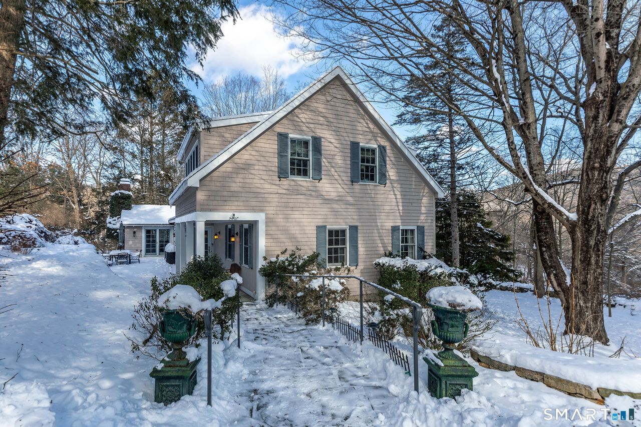 Overlooking neighboring pastureland and set on 5+ private acres with a small pond, this three-bedroom cottage is rich in charm and character. A gracious foyer welcomes you into a sitting room with fireplace and built-ins, and an adjacent formal dining room framed by handsome casement windows. The spacious kitchen offers a center island and sunny breakfast area, opening seamlessly to an outdoor bluestone patio. A vaulted living room, anchored by a second fireplace, steps out to the screened porch and enjoys commanding mountain views. Two main-level bedrooms share a full bath, while the upstairs primary suite features a vaulted ceiling and private bath with soaking tub and separate shower. A detached one-car garage completes the offering. Ideally located minutes to the Village of Kent with easy access to Metro-North, this is a wonderful Litchfield Hills retreat-under two hours from NYC.