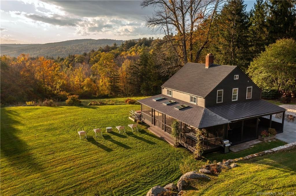 "Olive Farm" sits on 6 fully-fenced acres and is positioned for long-range Western sunset views of the Housatonic River Valley. Hardwood flooring, built-ins, and great natural light are present throughout. Enter into the kitchen equipped with black walnut countertops, a gas range stove and breakfast bar area. The adjacent dining room features plenty of built-in storage and an 8 person table. Sunlight fills the living room through a glass door leading to the screened-in porch, and through a large row of windows offering amazing views of the surrounding mountains. A cozy den with a pull-out sofa for guests connects the living room and main level en-suite bedroom, complete with a recently remodeled full bath. The second floor consists of a large primary bedroom with the same stunning Western views, a 10x8 room that could function as closet space or an office, and an additional bedroom with two full sized beds. A full hallway bathroom accommodates the upper level. The tranquility of Cornwall, CT can be from the 60 ft. long wrap around porch, and the beautiful new bluestone patio and saltwater pool. The detached 2 car garage features an EV charger. Shopping and dining in nearby Kent, Sharon, Litchfield, and New Preston can be reached in 20 minutes or less. Only 30 minutes to Metro North trains and 2 hours by car to Manhattan! June offered at $12,500, July & August at $15,000 per month. March-May 2026 & Academic Year 2026-2027 available at $6,750 per month.